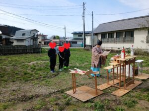 安全を祈願して地鎮祭が執り行われました。