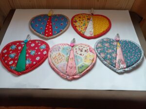 尚美さん手作りの猫カゴと鍋つかみを分けて頂きまして、