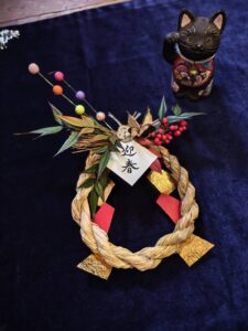 飾り付けの迎春の文字は、一つ一つ手書きをして貰ったそうです。
