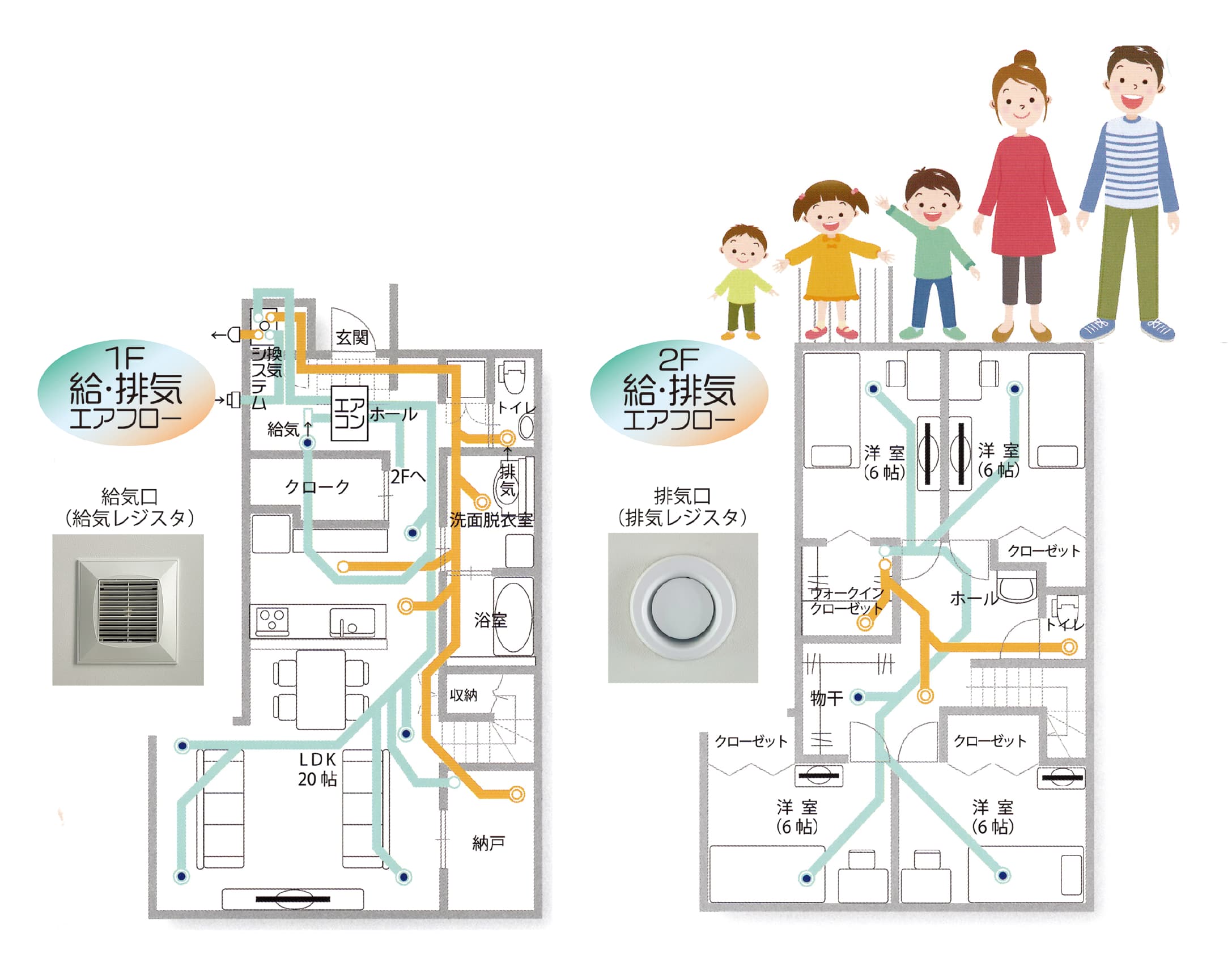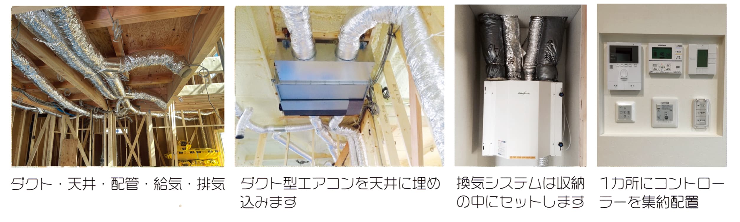 「全熱交換換気システムと1台のエアコンでダクト配管し全館冷暖房を実現」