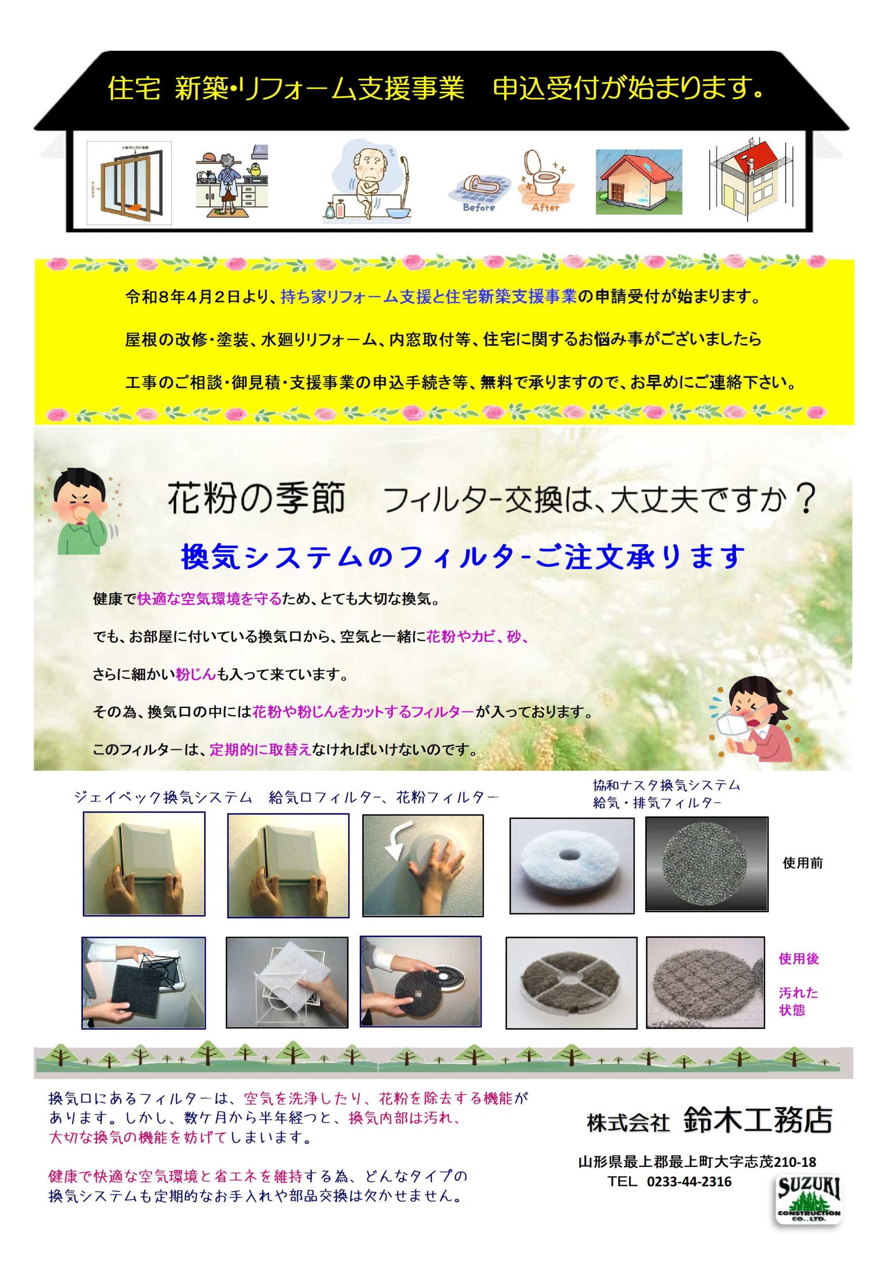 工事のご相談・御見積・支援事業の申込手続き等 無料で承りますので、お早めにご連絡下さい。